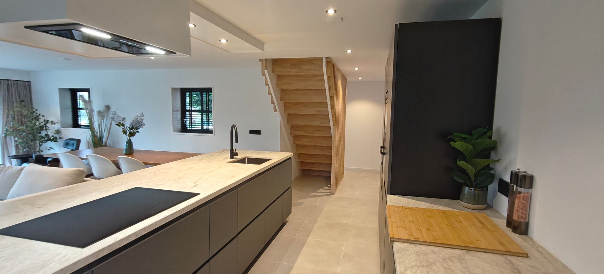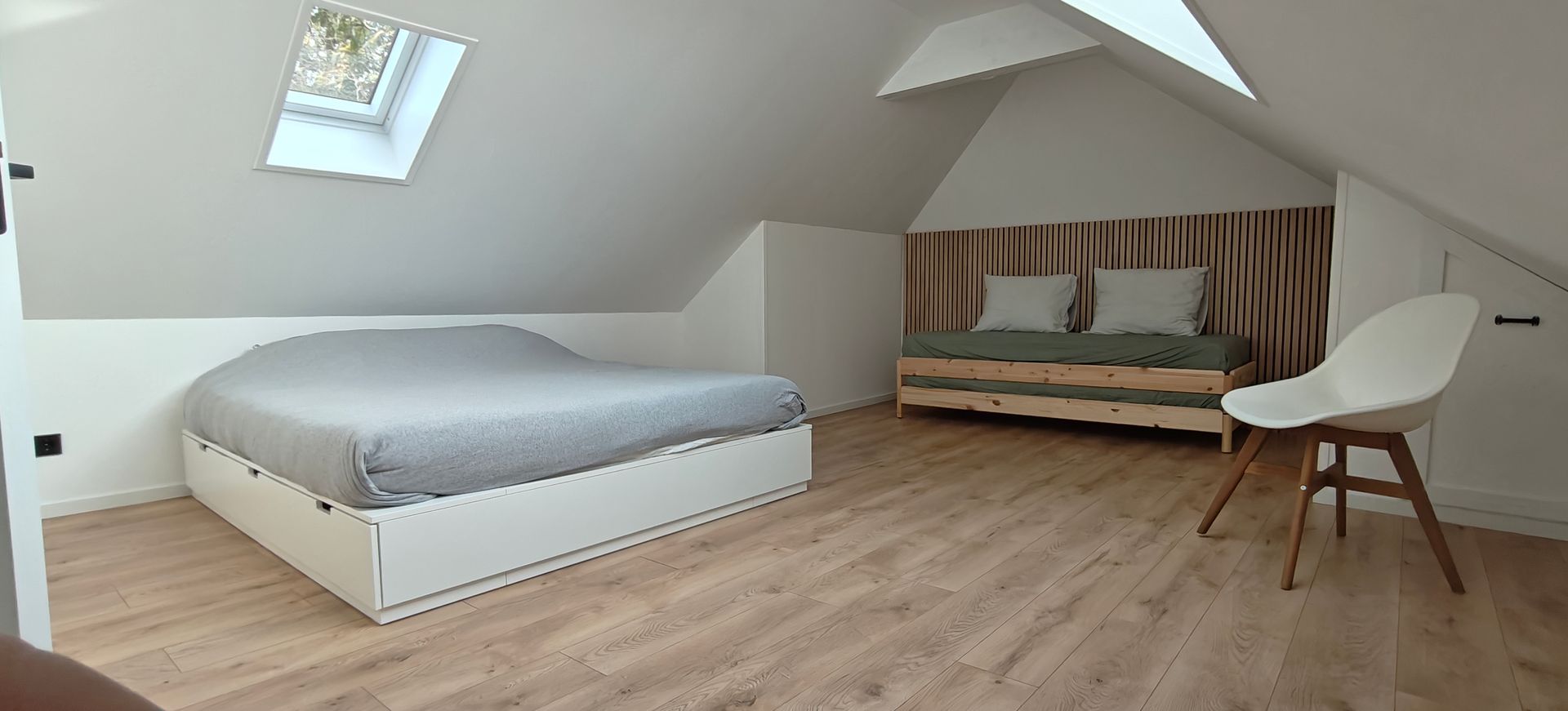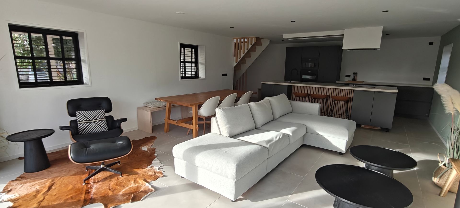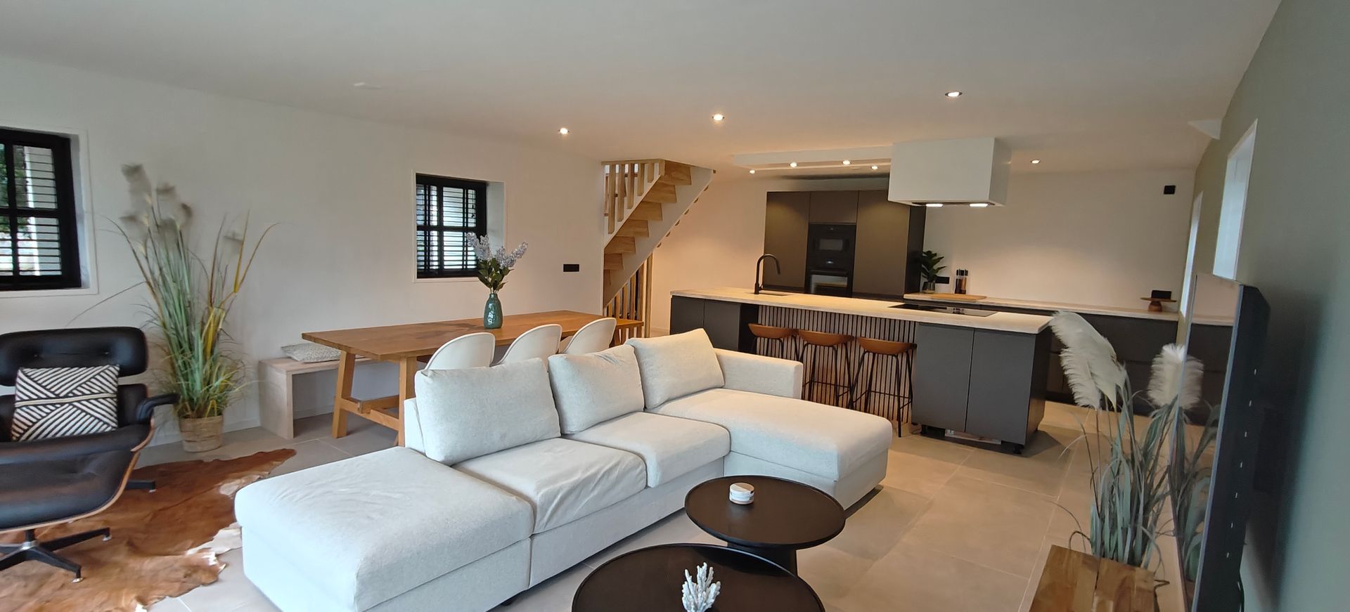 Het zijhuis is de schuur gelegen naast een voormalige boerderijwoning die stijlvol is omgebouwd tot een luxueus en modern gastenverblijf met eigen keuken en badkamer. Op de bovenverdieping bevinden zich 2 slaapkamers, slaapkamer 1 heeft 2 dubbele bedden, slaapkamer 2 heeft ook een dubbel bed. De benedenverdieping bestaat uit een goed uitgeruste open keuken met ruime eettafel en een gezellige zithoek.